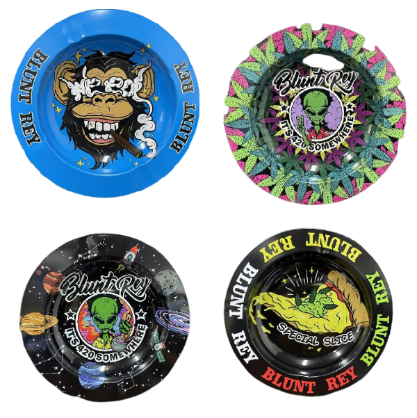 Blunt rey, ceniceros metálicos con excelentes diseños cannábicos.