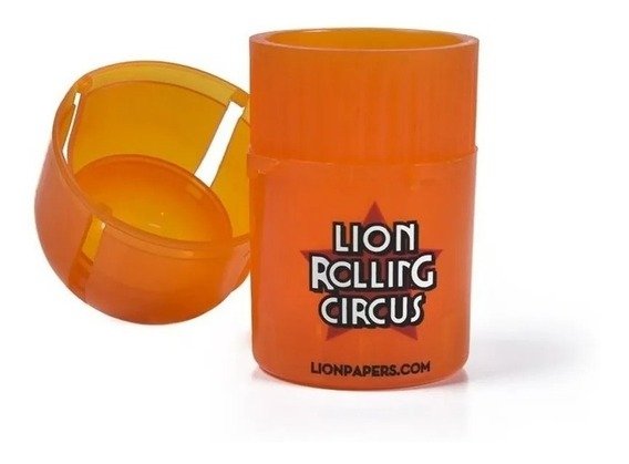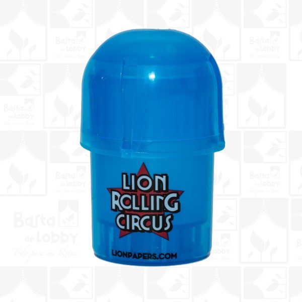 Picador y contenedor de 3 partes Lion Rolling Circus Tainer. Este práctico modelo está realizado en plástico de uso médico que no contamina ni modifica el sabor y presenta cierre hermético con traba que evita su fácil apertura. Viene en varios colores (consultar disponibilidad)