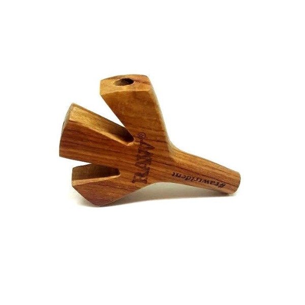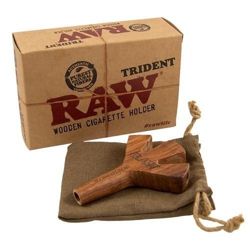 RAW Trident es el diseño de pipa para fumar 3 canutos a la vez. Es una pipa de madera llena de detalles que permite fumar hasta 3 canutos o cones a la vez, tiene 4 agujeros, uno para inhalar el humo de la boca y en la otra extremidad 3 huecos para colocar nuestros canutos.