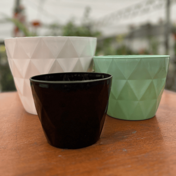 Macetas Diamante en diversos tamaños y colores. Consultar con el vendedor de turno por la elección de colores.